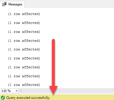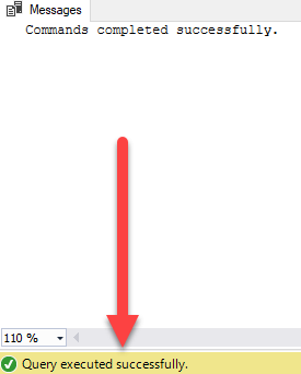 - Confirm that the script executed successfully via the messages pane.