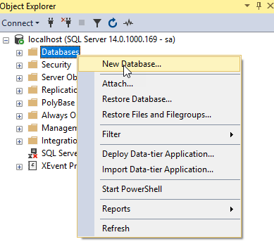 - In Object Explorer, right-click the Databases node.