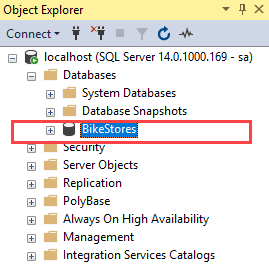 BikeStoresdatabase appears under the Databases node.