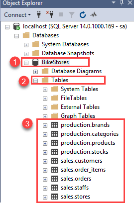 BikeStores > Tables. - You should see schemas and tables created.